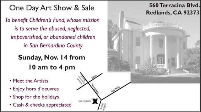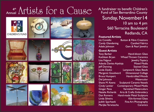 I will be participating in the 2010 Artists for a Cause Show. This year’s recipient charity is Children’s Fund of San Bernardino County. The show is on Sunday, November 14th from 10:00am to 4:00pm. If you are in the neighborhood, please stop by: