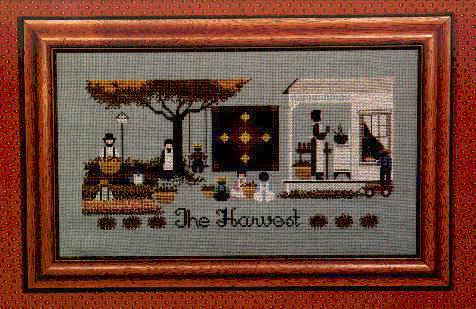 Every year around this time, I think of my yet unfinished “Harvest” cross stitch project. When we first returned from Europe 20+ years ago, my sister was doing cross stitching. I’m always game for something new to me , so I dived right in. My husband was baffled and at a loss for words, since he couldn’t fathom how anyone could just sit there and make “x”s over and over again – I found it to be therapeutic. Anyway, the “Harvest” project is from designer Marilyn Leavitt-Imblum at Told In A Garden. Here is my work in progress. I only have the area to the left to finish – one day…