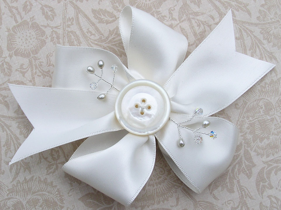 And finally, I thought, what could I make out of the big mother of pearl button? Well, Cindy had packaged the buttons in a pretty brown box topped with a very nicely tied bow: