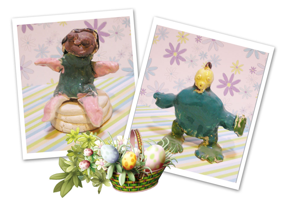 And to give my boys equal time, here are their artful endeavors from elementary school. Not Easter themed, but this is what they liked making: