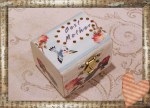 It’s a trinket box embellished with rhinestones, a vintage bird & floral decoupage. The bird graphic is from Free Pretty Things For You. I will make a small special something to go in the box :-).