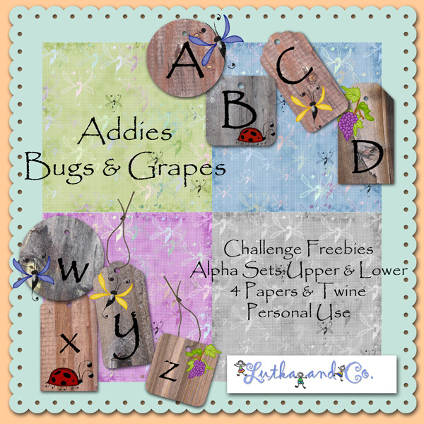 Addie of Addies Designs is hosting another scrapbooking challenge. You can find the challenge at Coolscrapsdigital, CU Pack for a freebie. Addie is giving away these very cute bugs and grapes and we are to make freebies with them: