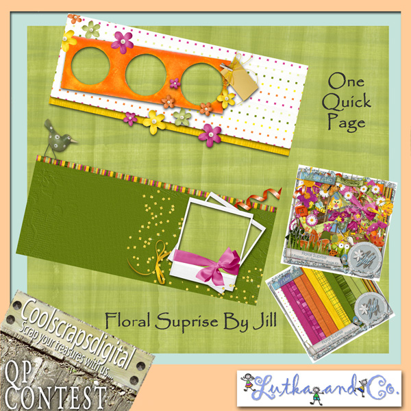I participated in Coolscrapdigital’s Quick Page Contest. We were given a kit called “Suprise” created by Jill, which we used to come up with a Quick Page design. It was fun so I made two. I submitted the first one. Both QP’s can be downloaded for personal use from here or at the Coolscrapdigital site: