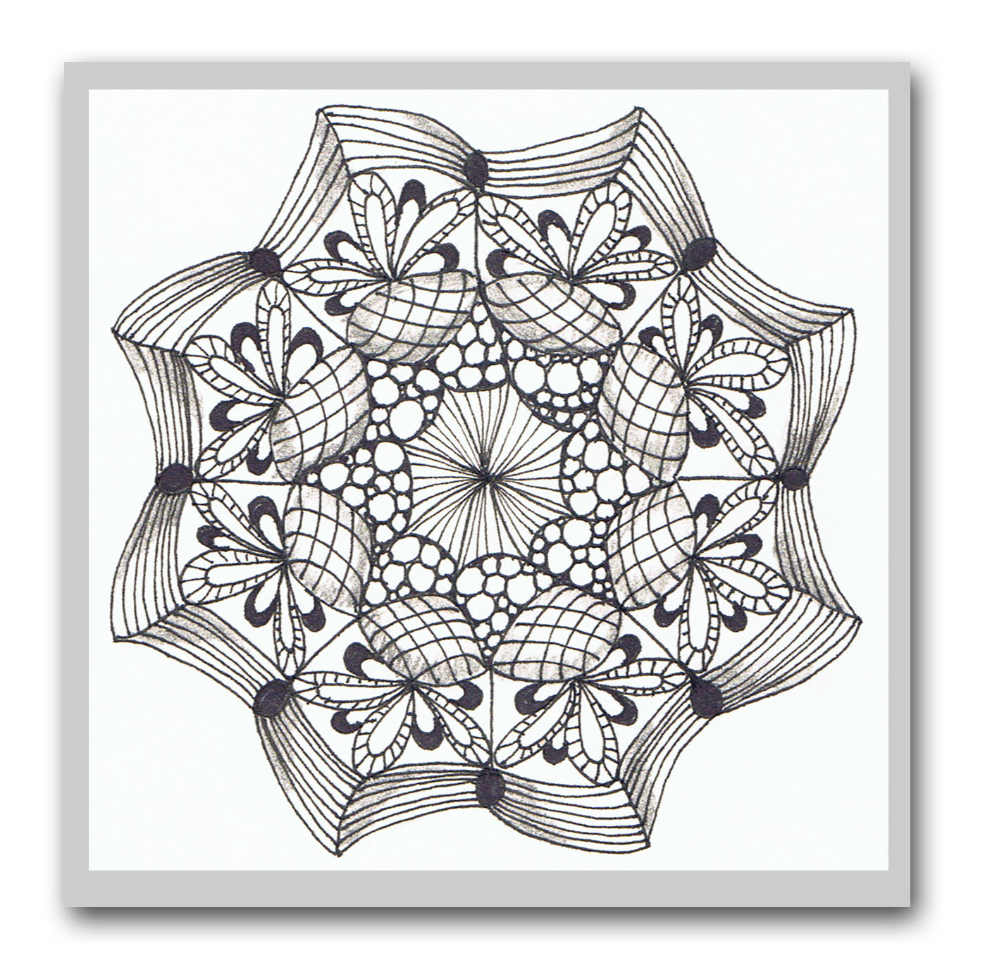 Guest artist/challenger Genevieve, has given us a zendala (a fusion of mandala and zentangle) template to work with this week: