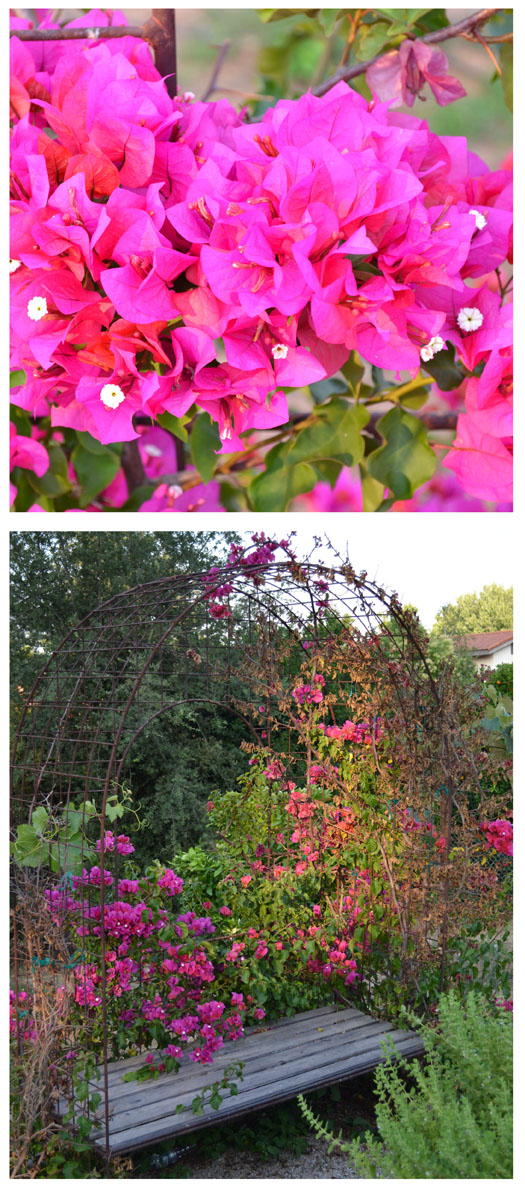 The Bougainvillea are such a gorgeous color! The white squash almost looks like some type of gourd!