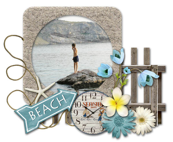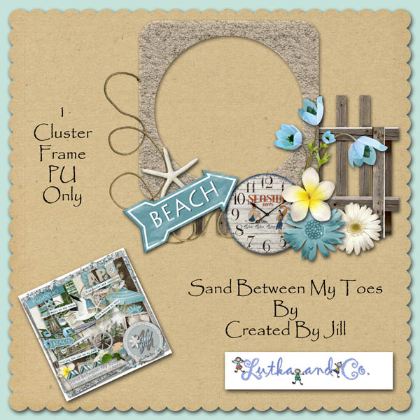 Here is the third cluster frame freebie I made. This time, I used the kit “Sand Between My Toes” by Created by Jill: