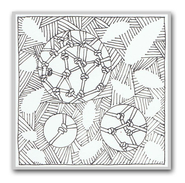 The Diva is back, and has challenged us with a new tangle, “Pendriss”. It felt a bit awkward to draw, so I kept it simple: