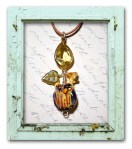 While I was making beads for my BSBP partner, I was able to squeeze in this little owl. He has crazy eyes, but is cute nonetheless. I used vintage finds and made him into a pendant: