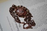 First off, I made this wire wrapped bracelet. I used the main focal Tracey sent me along with the small round stone beads. I added Czech polished beads, copper chain, and clasp: