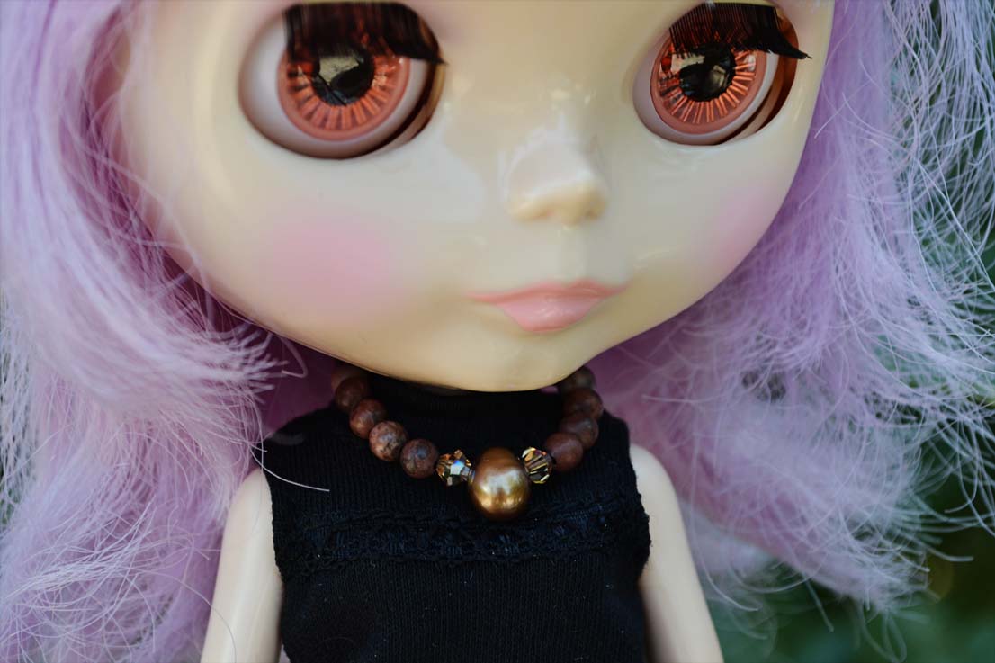 And finally, I made a necklace for my Blythe Doll, Pinkie with what was left of the tiny stone beads: