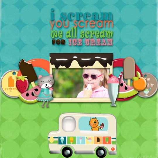 Well, the weather has definitely cooled. But when I saw this cute Ice Cream themed kit, Scream For Ice Cream by Jellybean Design, I just had to do a layout. Here is the kit: