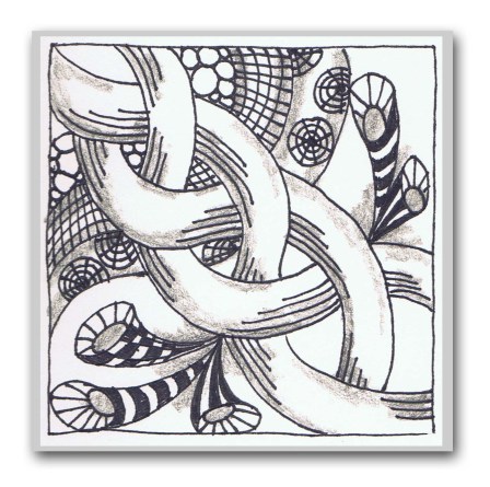 This week, the diva challenged us to do a tile with BIG tangles. I found it pretty easy and fast to do. Not sure about the overall result, but I did finish this week’s challenge in record time 🙂 :