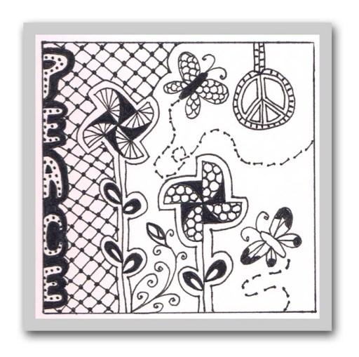 And as the Diva set forth another Pinwheels For Peace Challenge, I decided to join in. I think my efforts are more doodling rather then zentangling, but I had fun doing it :-). Here is a link to the one I did last year: Zentangle Challenge #40 Pinwheels For Peace 2011. And here is the one I did for this challenge: