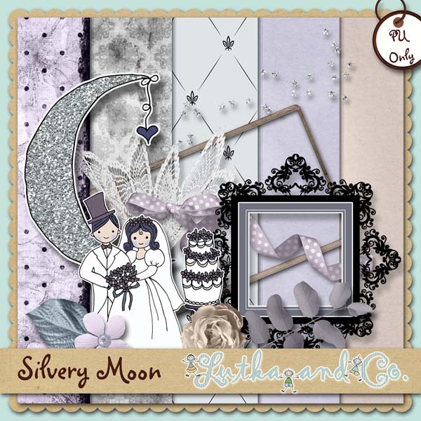 When I was a little girl, I remember watching an old Doris Day movie titled “By The Light Of The Silvery Moon”. I recall loving that movie and song, so that is what I based my kit on. On the drive down to take our son back to college, I spent time sketching a bride & groom, wedding cake, and a crescent moon. I extracted elements from photos I took, and added a few CU elements, and here is my kit: