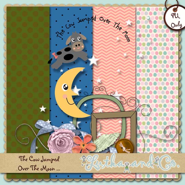 When I saw this photo, I imagined a cow jumping over a moon. And, since I like that nursery rhyme, I decided to make a mini kit based on it. And here it is: