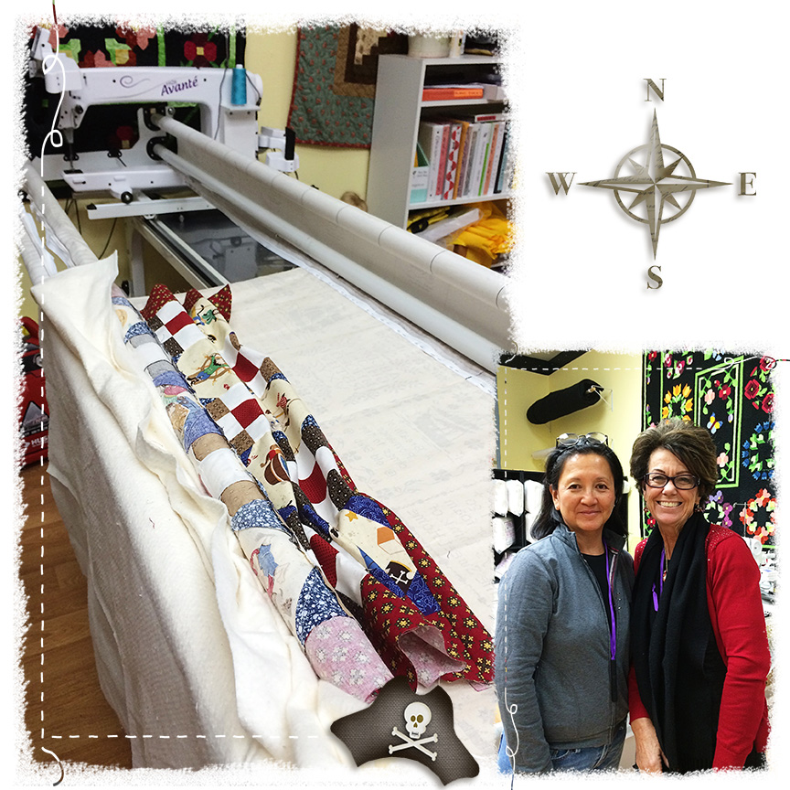 Dear Hubby gifted me with a Long Arm Quilting Class. It was fun, exhausting, and a bit frustrating all at the same time. As usual, my current skills and where I want to be are not aligned. It was fun, because it was all new to me. Exhausting, because there was so much information to take in all at once, and frustrating, because I wanted to free motion instead of following a pantograph. All in all, a very good experience.