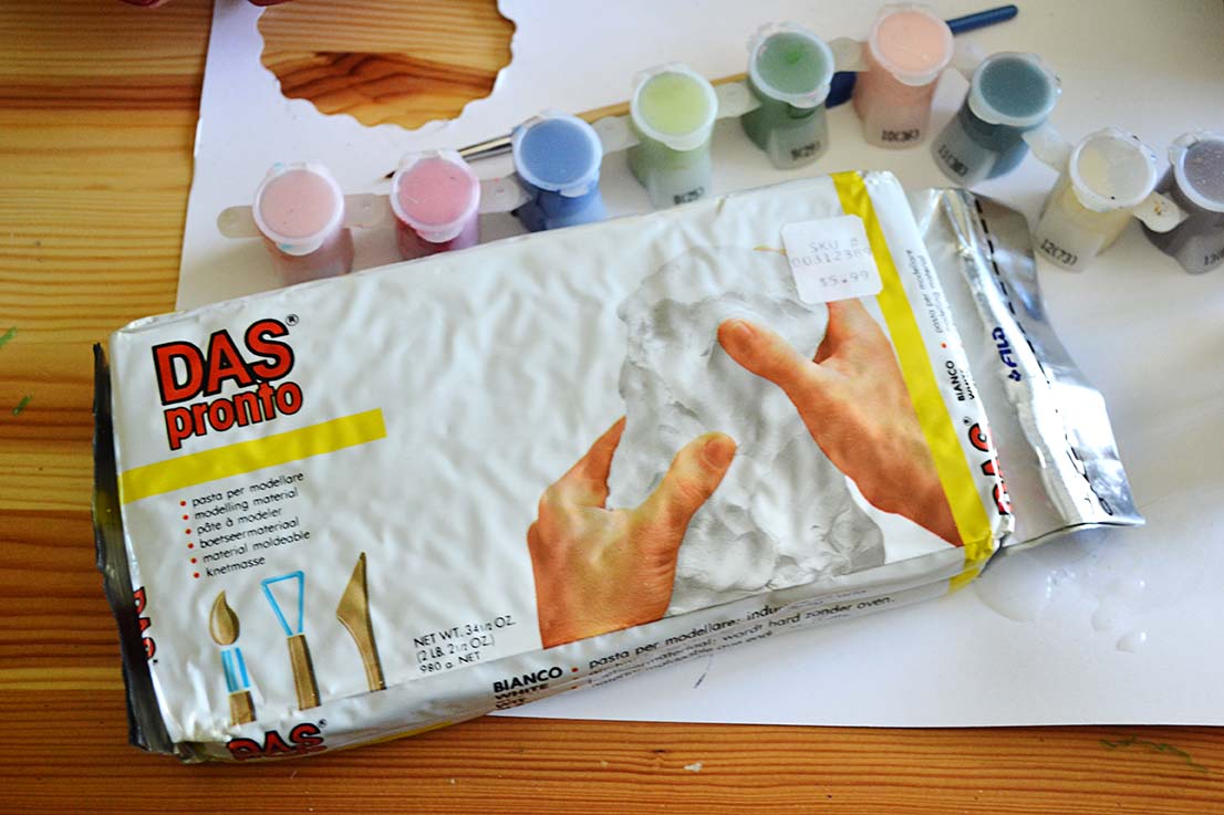 And look at what else I found while rummaging through my craft bins – some air dry clay, I don’t even know how old it is, but it seems to be in good shape still. My mind is going off again in another creative direction…