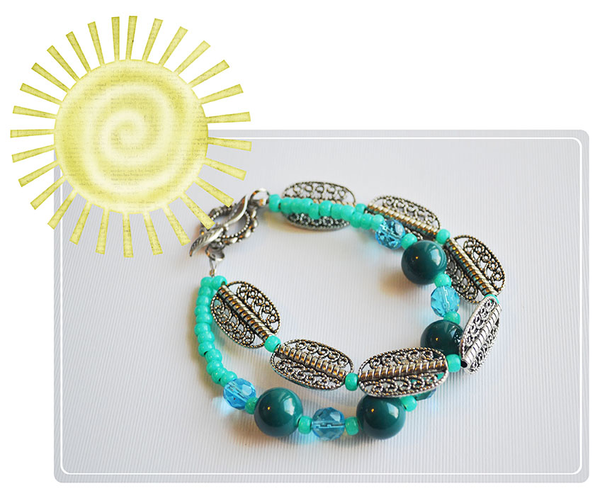 As bracelets go, I like them chunky. So, I strung the beads up, and doubled them: