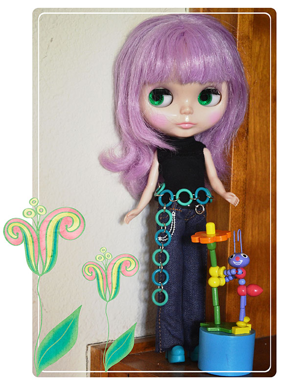 And finally, the “quirky components” Judy sent, were made into a “groovy” belt for my Blythe girl, Pinkie – wish I had one life size 🙂