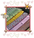 Well, leave it to my Quilty friends to surprise me with fabric! After we’ve been quilting together for a while, we know exactly what the others like. And here are the cute, colorful vintage fabrics they got me. Thanks Ellie & Donna – so sweet!