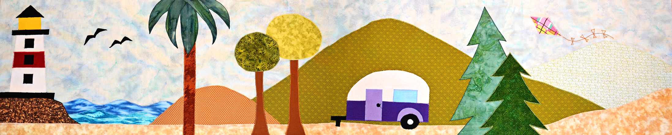 Our quilt group has been working on our Row By Row quilts for some time now. I did another row for my dear friend Ellie. The first one I did was back in March of last year, a winter row. Ellie’s theme is “Seasons”. This time, I did a summer row. There is an order to my madness/messiness… So glad for my studio – now I can spread out and have fun!