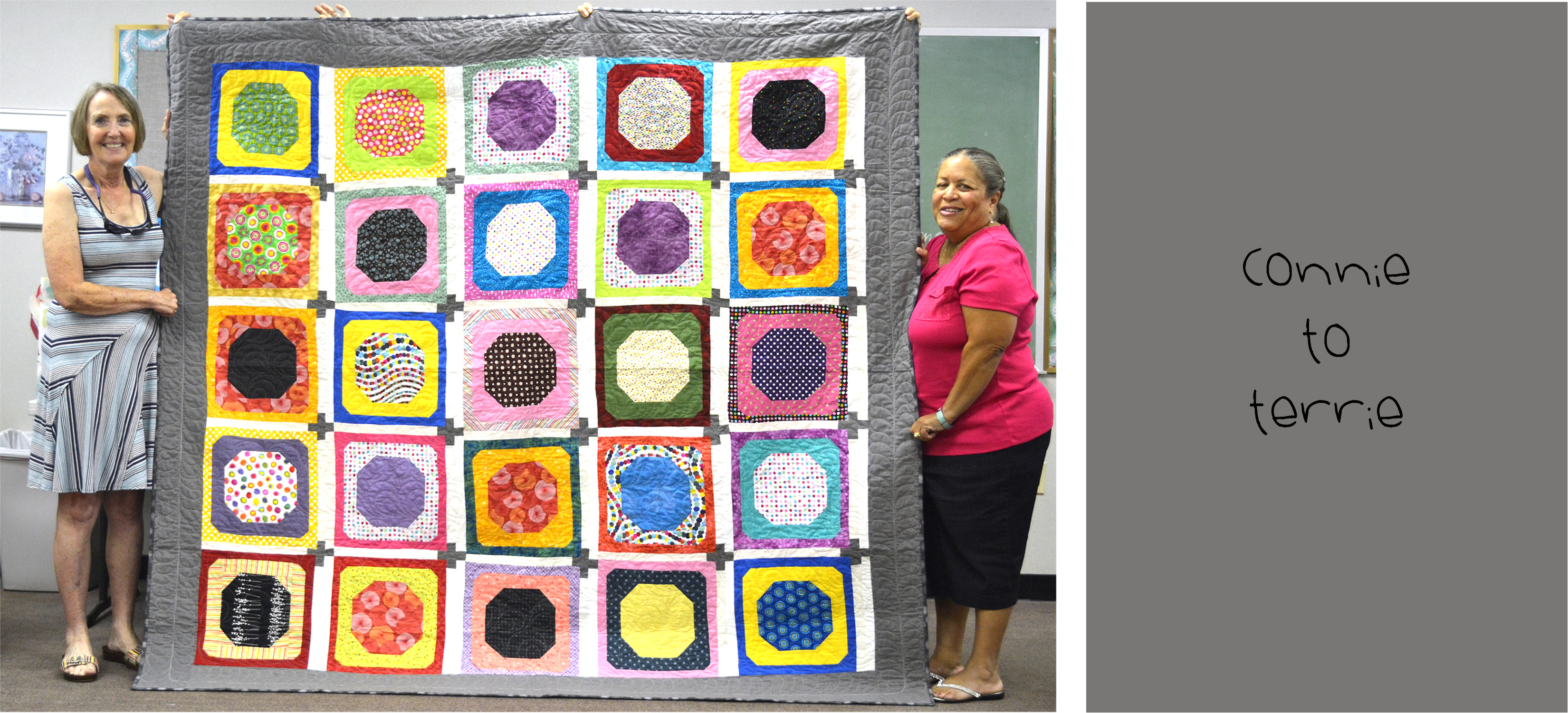 So, after collecting several tops, I set out to finish them and gift them to my sisters; my dear sisters who lovingly care for our aging parents. I chose to finish them by machine. Several days of longarm rental later, and many hours of binding, here are the finished quilts ( I took advantage of dear younger son visiting):