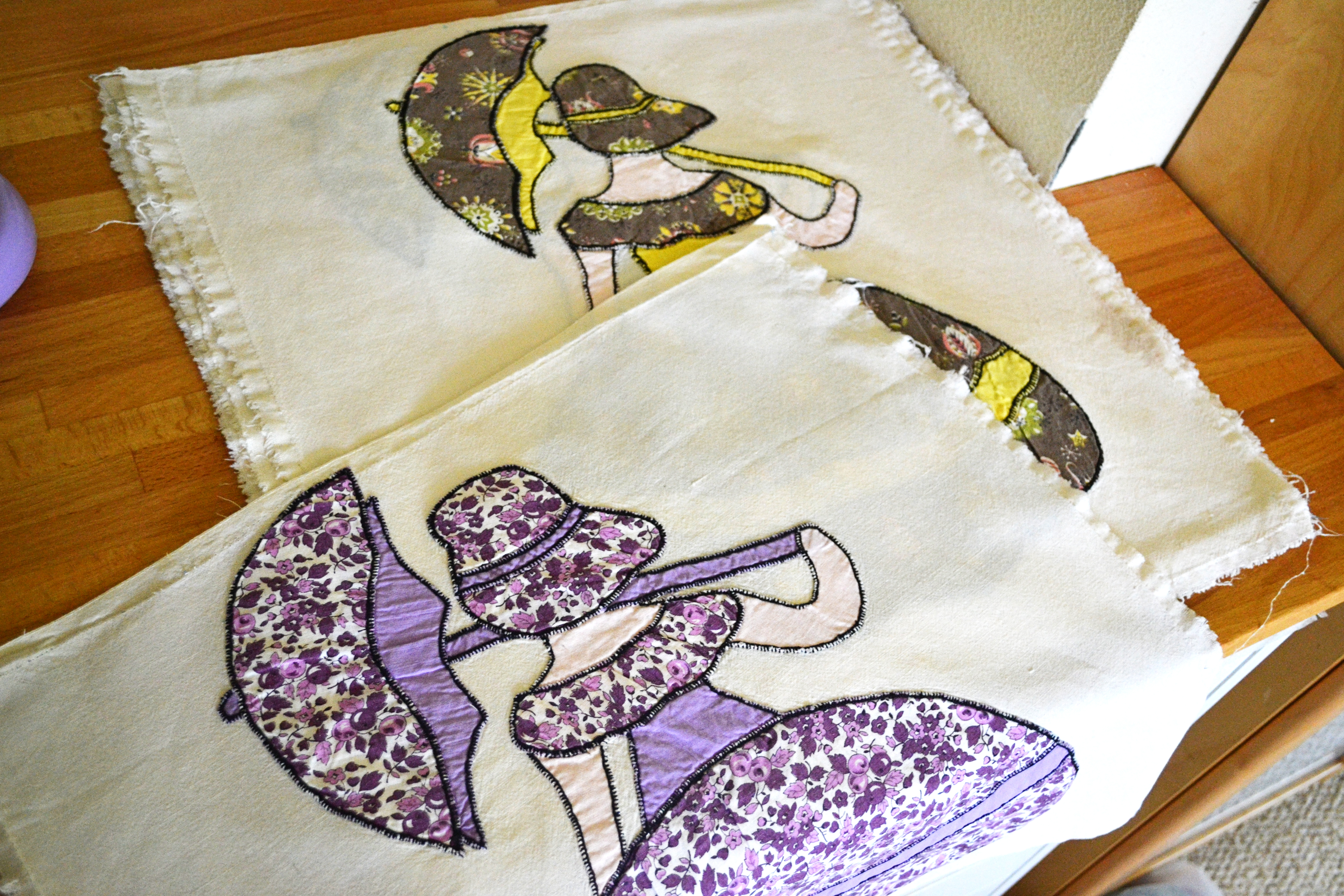 A couple more quilts made of vintage quilt tops. I find tops that I really really like, and as I make them into quilts, sometimes they “speak” to me and tell me who they belong to… And now, they are happily in their new homes. Not the best photos – no quilt holders around, so I precariously stood on a bar stool and did my best: