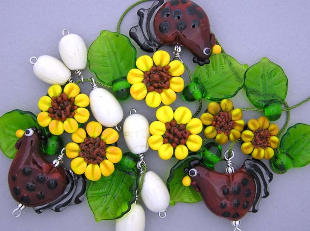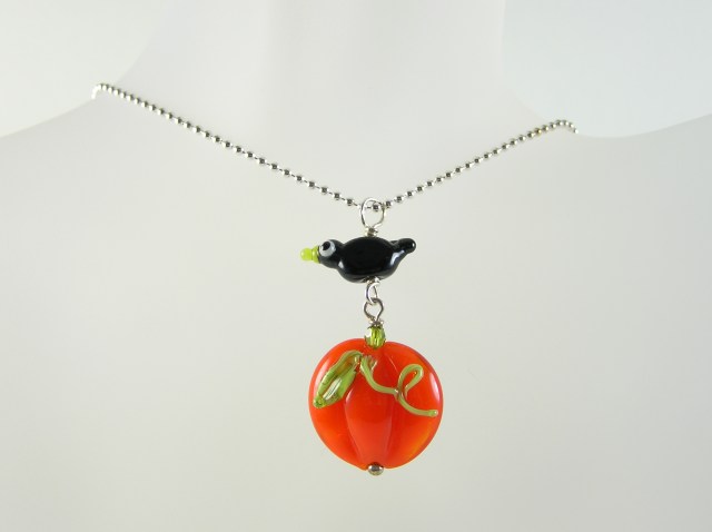 Here is a lampwork bead pendant I made. A tiny crow dangling above a pumpkin. Are you in the mood for Halloween yet?: