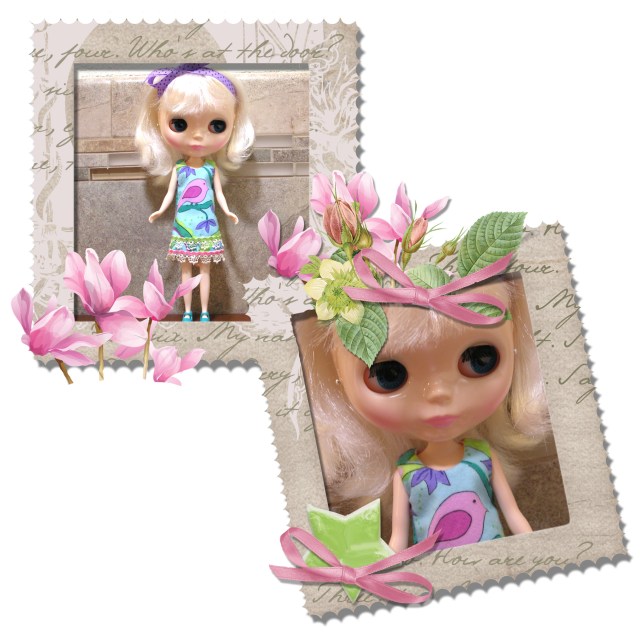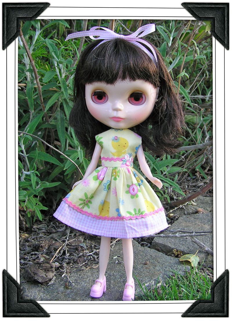 I made an Easter dress for my Blythe doll Hana with little chicks on them: