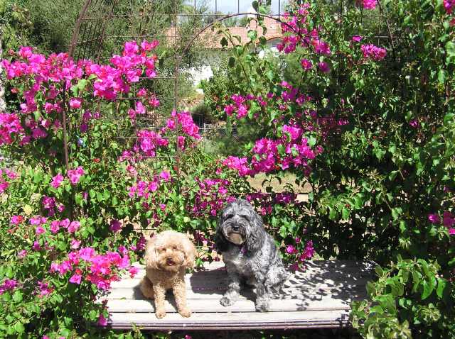 Here are my little helpers – Koko and Hiro, enjoying the sun on the trellis bench:
