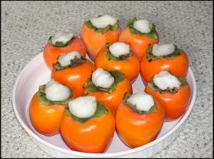 There are no other fruits that represent the fall season to me as persimmons do – well, pomegranates are a close second. My sweet elderly neighbor gave me a bunch of hachiyas. I have been figuring out the best way to ripen them: the “window sill method”, the “persimmons in a brown bag with a banana method”, and “the persimmons with cotton balls dunked in vodka method”: