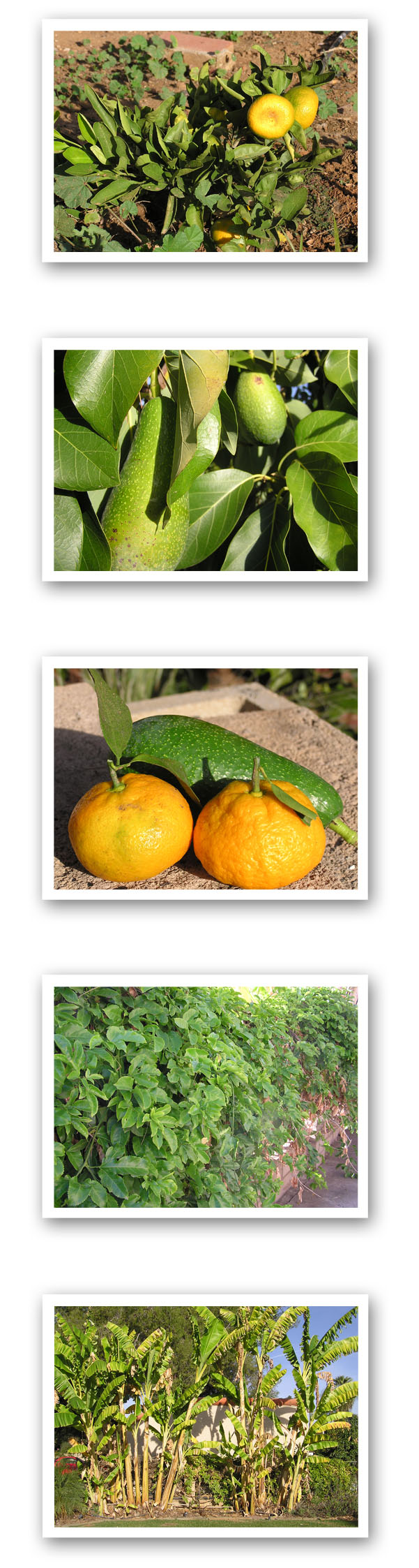 I planted three satsuma trees in the spring. And although they are very small, they have fruit on them. My neighbor is selling hers in her stand, so I took a look in the back, and sure enough, they were ripe. Winter in Southern California is not so very cold, but my gardening has slowed. I picked an avocado to see if it would ripen off the tree. The passion fruit vine is making a comeback after being choked by the banana trees. Oh, the banana trees… my gardener recommends removing them all, as they are wreaking havoc in the area, but they are so pretty, and hides my garage… we will have to think on this one.